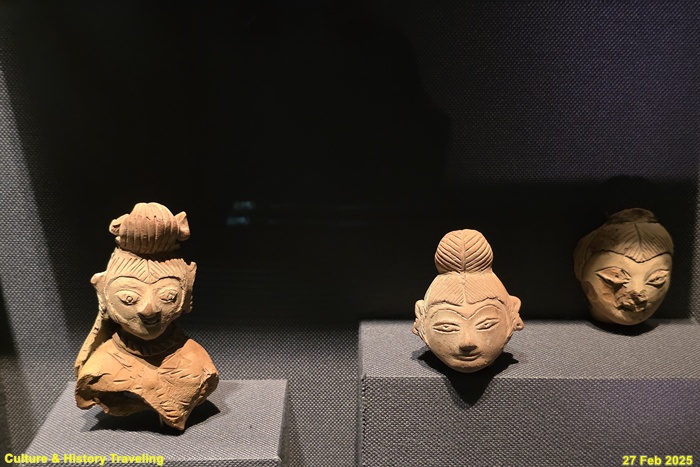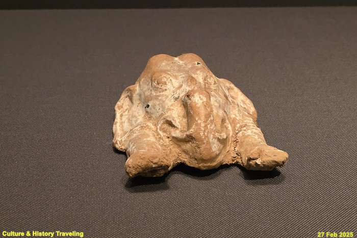 헤라클레스는 사자의 가죽을 덮어쓰고 곤봉을 든 강인한 남성의 모습으로 표현되곤 합니다. 이 작품은 헤라클레스의 이미지가 실크로드를 거쳐 서역의 오아시스 도시국가인 호탄까지 전해졌음을 의미합니다. (안내문, 도쿄국립박물관, 2025년)