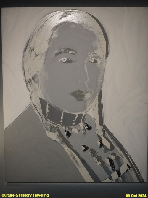 1960년대 앤디 워홀의 <캠벨수프 캔>, <브릴로 상자>, <매릴린 먼로>, <마오쩌둥> 등 다양한 이미지는 예술의 개념을 혁신적으로 변화시켰습니다. 미국 건국 200주년이 되던 1976년에 앤디 워홀은 북미 원주민 운동가이자 지도자인 러셀 민스에게 초상화를 그리게 해달라고 요청했습니다. 러셀 민스는 오글라라 라코타 출신으로 북미 원주민의 권리를 위해 일하는 정치 활동가이자 배우, 음악가, 작가였습니다. 북미 원주민 운동은 원주민에 대한 빈곤, 차별, 경찰 폭력 등 구조적 문제를 해결하고자 일어났습니다. 러셀 민스는 원주민들의 권리를 향상하고자 중남미 지역 단체, 유엔과 협력하는 등 원주민 관련 국제적 문제에 적극적으로 참여했습니다. 러셀 민스는 미국 문화에서 ‘대중문화의 아이콘’이자 지배적 문화에 대한 ‘저항의 상징’이기도 했지만 역설적이게도 워홀은 민스가 누구인지 잘 몰랐고, 그가 원주민 정치계에서 지위가 높았다는 사실보다 그의 외모에 끌린 것으로 알려져 있습니다. (안내문, 중앙박물관 특별전, 2024년)