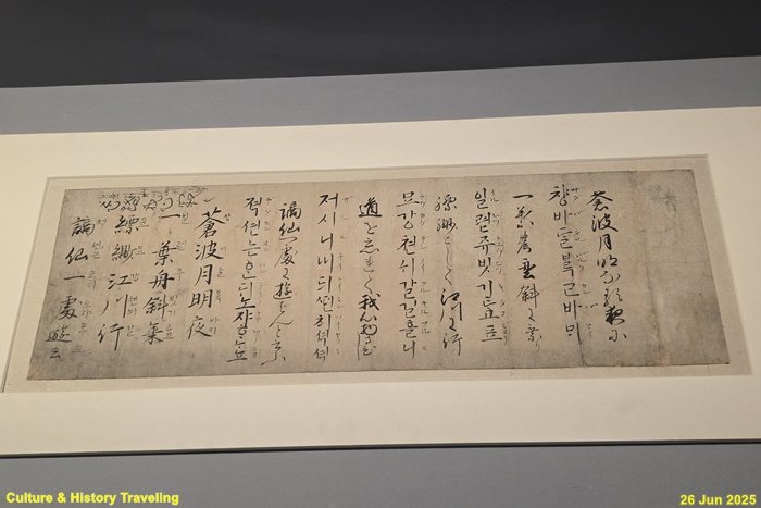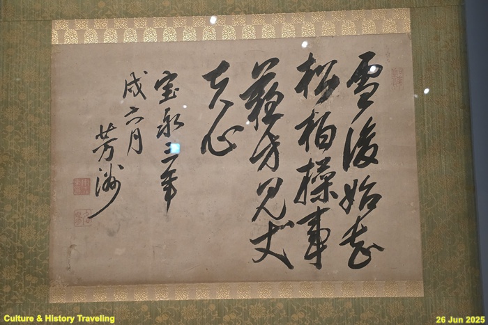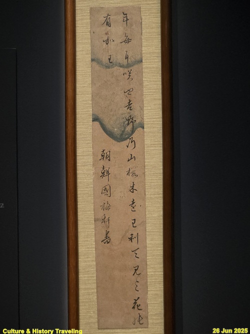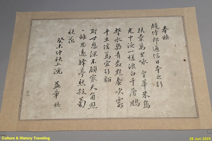 이 시는 아메노모리 호슈가 쓴 것으로, 임제종 승려 묘초의 말ㅇ르 담고 있다. 아메노모리 호슈는 에도 막부 유학자 지노시타 준안 문하에서 수학하고, 쓰시마번에서 대조선 외교를 담당했다. 부산 왜관엣 조선어를 익히며 통역과 조선어 교육의 중요성을 강조했고, 1727년에는 조선어 학교를 개설하기도 했다. (안내문, 서울역사박물관 특별전, 2025년)