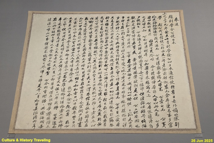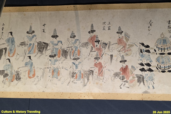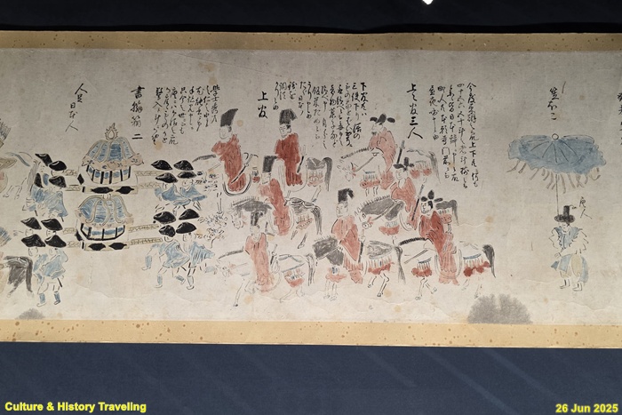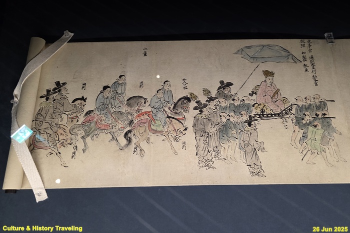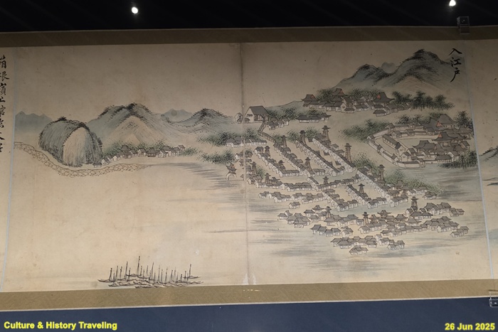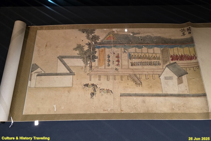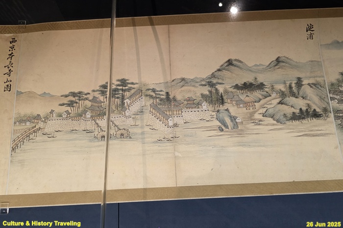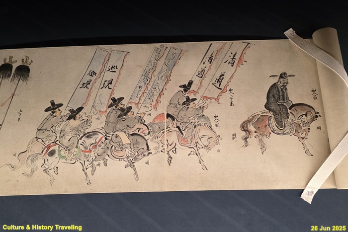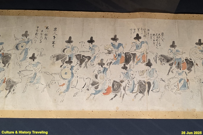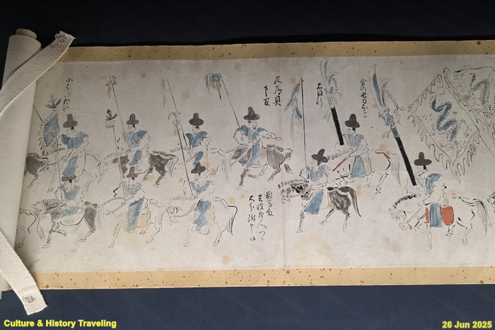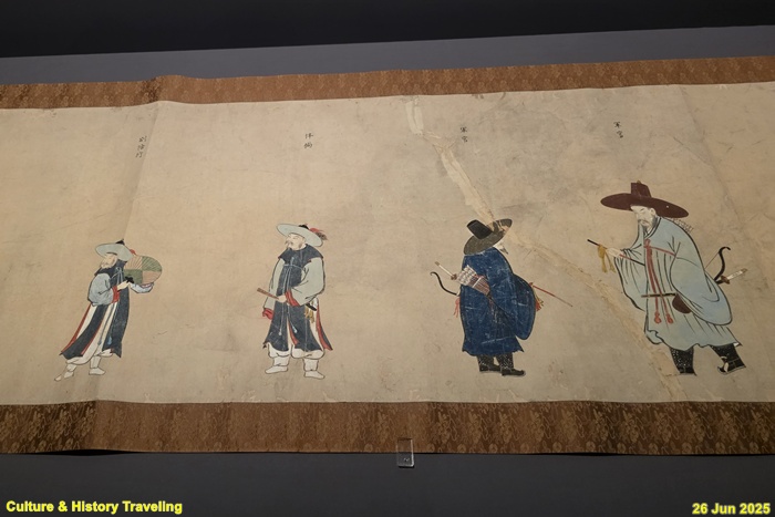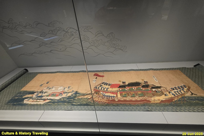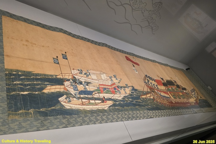 왕복 1,470리, 현재 거리로 환산하면 왕복 4,600km가 넘는 대장정이었습니다. 이처럼 통신사의 여정은 단순한 외교 사절단의 이동이 아니라, 장기간에 걸친 국가 간 외교·문화 교류의 상징적인 길이었습니다. (안내문, 서울역사박물관 특별전, 2025년)