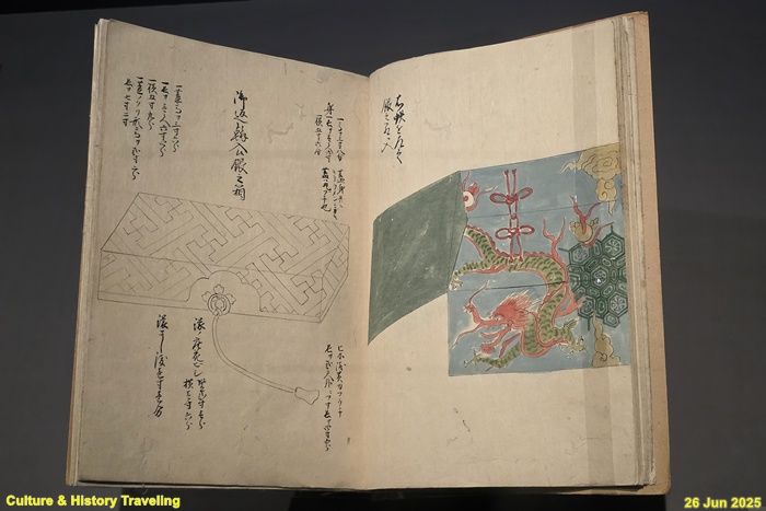 이 그림은 도쿠가와 막부 제8대 쇼군 도쿠가와 요시무네행의 회답서와 예물목록을 담은 국서함을 묘사한 것이다. 제9차 통신사는 도쿠가와 요시무네의 쇼군직 계승을 축하하기 위해 파견되었다. 화려한 채색과 문양의 국서함, 이를 다시 은궤 등에 넣는 절차, 쇼군 인장의 규격까지 구체적으로 설명하고 있어, 국서의 보관과 전달이 매우 정중하고 엄격한 절차를 따랐음을 알 수 있다. 이 기록은 국서 교환이라는 외교 의례의 중요성을 보여주는 귀중한 자료이다. (안내문, 서울역사박물관 특별전, 2025년)