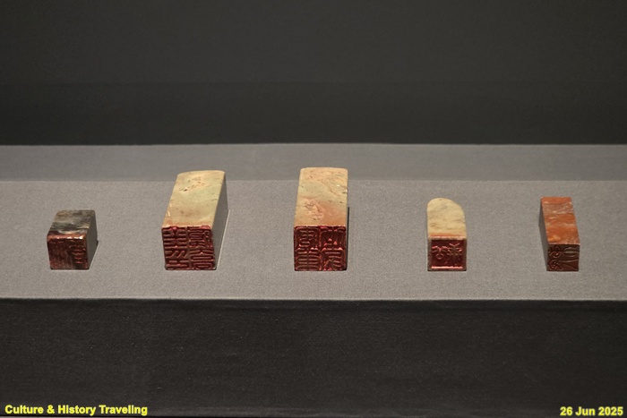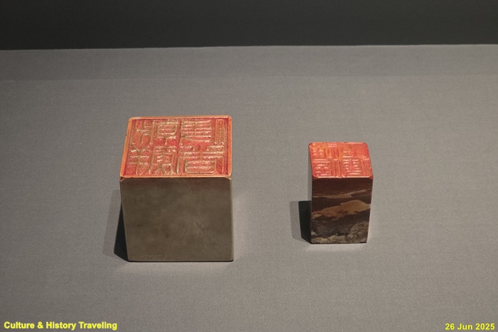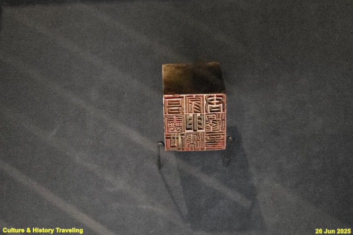 마지막 통신사행의 정사 김이교가 외교 업무에 사용한 인장이다. ‘조선사자’는 국왕의 대리인을, ‘통신정사’는 통신사의 최고 책임자를 의미한다. 원래 조선의 관인은 철로 만든 인장이지만, 이 인장은 통신사행에서 사용한 인장을 국가에 반납하기 전, 사행을 기념해 벽옥으로 모각한 것이다. (안내문, 서울역사박물관 특별전, 2025년)