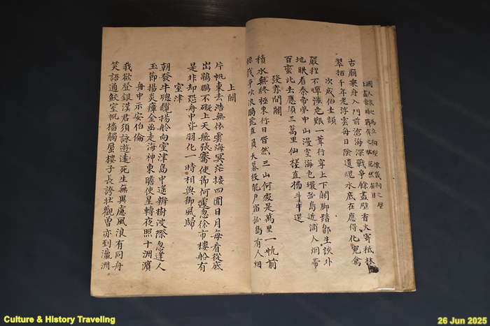 한시를 일본 글자가타카나와 조선 글자로 번갈아 해석하여 두 나라 글자를 비교하며 익힐 수 있도록 구성한 문서이다. 일본에서 조선어 학습은 주로 왜관을 통해 이루어졌으며, 최초의 조선어 학습서는 아메노모리 호슈가 편찬한 <교린수지交隣須知>이다. 한편, 통신사를 수행하며 외교 실무를 맡았던 역관 등이 배우는 일본어 학습서로는 <첩해신어捷解新語>가 있다. (안내문, 서울역사박물관 특별전, 2025년)