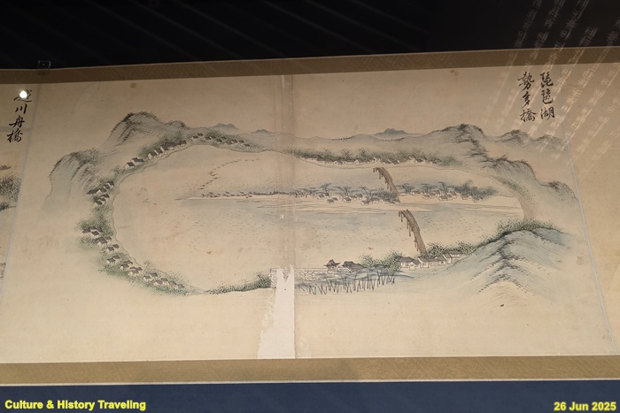 ‘비와호 세타 다리(琵琶湖勢多橋)’는 오쓰시(大津市)에 위치한 세타노카라하시(瀬田の唐橋)라 한다. 이 다리는 비와호로 흘러드는 세타강(瀬田川)에 걸쳐 있으며, 예로부터 교토로 들어가는 군사적, 교통적 요충지로 여겨졌다. 다리를 건넌 통신사 일행은 ‘조선인가도’를 통해 다음 목적지로 향했다.