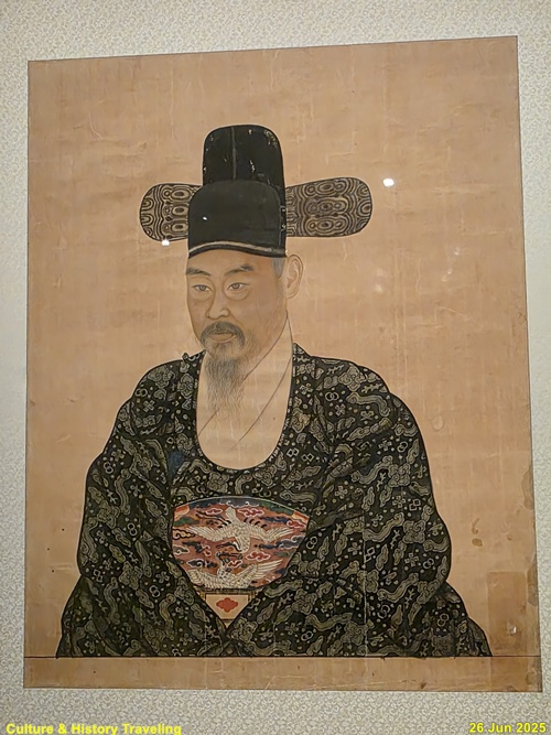 마지막 통신사행의 정사 김이교의 초상이다. 마지막 통신사행은 에도가 아닌 쓰시마에서 역지통신 형식으로 진행되었다. 사행 규모가 축소되어 정사와 부사만 파견되었으며, 의례도 간소화되었다. 김이교는 쓰시마에서 막부 유관이자 주자학자있던 고가 세이리와 교유하미 학문적 교류를 나뉬다. 일본은 18세기 후반 이후 주자학을 다시 중시하게 되었는데, 고가 세이리는 <퇴교서초>를 김이교에게 증정하며 학문적 소통을 이어갔다 (안내문, 서울역사박물관 특별전, 2025년)