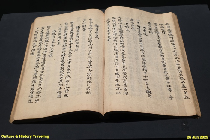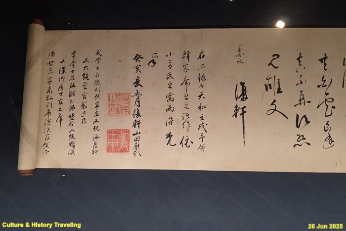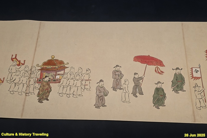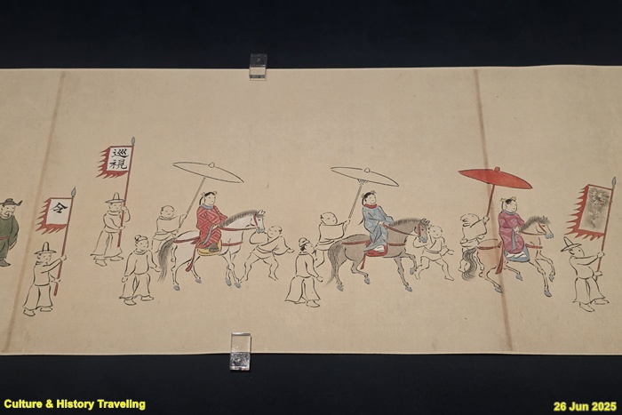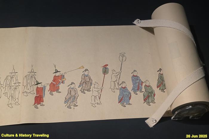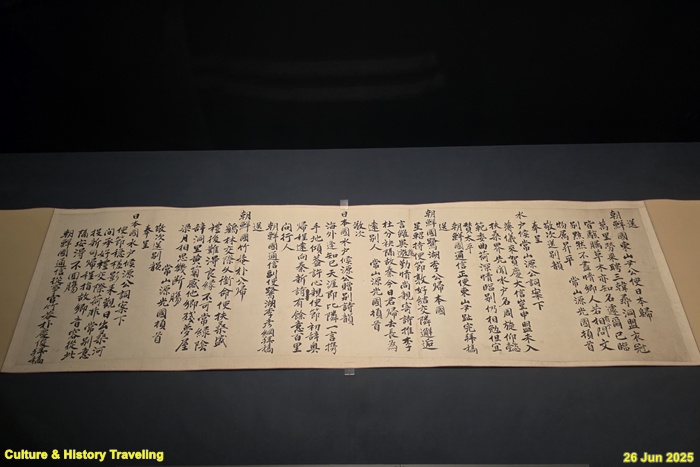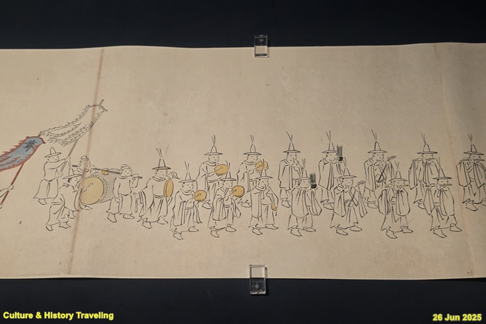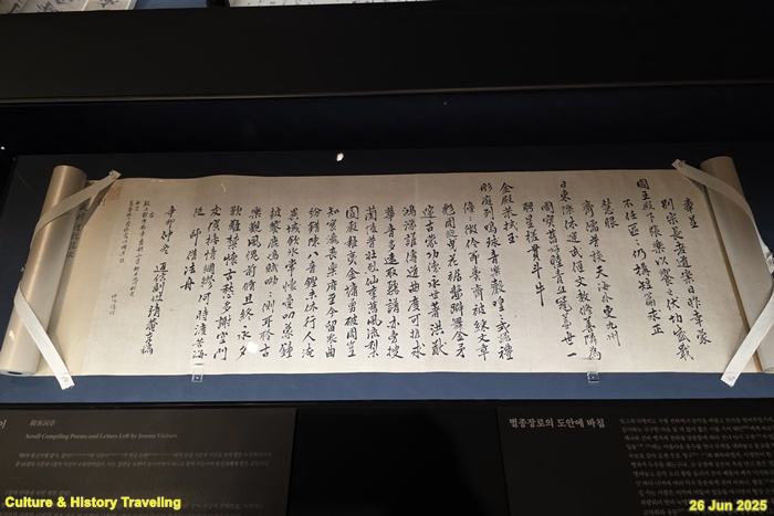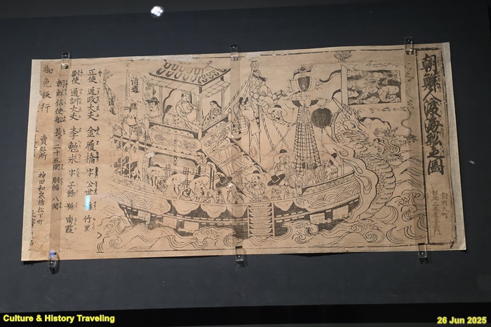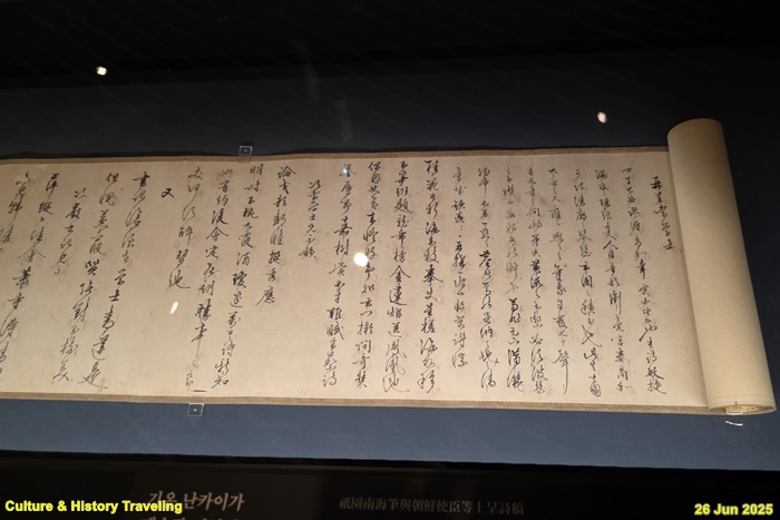 17세기 후반, 동아시아 정세가 안정되고 통신사 외교 체제가 확립되어 감에 따라 통신사 사절단의 문화 교류는 활발해졌습니다. 오랜 외교 관계 속에서 자연스럽게 형성된 문화 교류는 서로를 이해하고 우호를 다지는 중요한 역할을 했습니다. 조선은 통신사를 통해 국위를 선양하고 일본을 ‘교화’하고자 했으며, 일본은 중국과의 교류가 끊긴 상황에서 조선을 통해 문물과 학문을 배우려 했습니다. 두 나라는 ‘한자’라는 공통의 문자로 소통하며 학문과 예술을 교류했습니다. 처음에는 경계와 멸시도 있었지만, 시간이 흐르며 서로를 이해하고 존중하는 관계로 나아갔습니다. 조선 전기의 통신사가 동아시아 외교 질서 구축의 기반을 다졌다면, 후기의 통신사는 동아시아 정세의 안정을 기반으로 한 문화교류를 통해 한·중·일 세 나라의 문화를 연결하는 창구가 되었습니다. 비록 200년 동안 20년에 한 번꼴로만 이루어진 사행이었지만, 그 영향을 받은 문화는 상류층뿐만 아니라 일반 민중에게까지 스며들어 오랫동안 이어졌습니다. (안내문, 서울역사박물관 특별전, 2025년)