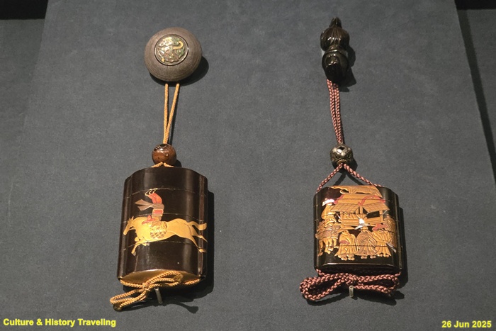 인롱은 약을 담는 소형 용기로, 끈을 달아 허리에 차서 사용했다. 에도시대 무사의 필수 장신구였으며, 마상재와 행렬 장면을 모티프로 하고 있다. 여러 단으로 겹쳐진 소형 용기를 양쪽 끝의 구멍에 통과시킨 뒤, 끈 상단에 네츠케를 달고, 끈의 중간에 통과시킨 오시메로 뚜껑과 각단의 개폐를 조정해 약을 꺼낼 수 있도록 설계되었다. 시간이 지나면서 단순한 약통의 기능을 넘어 장신구로 발전하여 무사와 부유한 상인들에게 인기를 얻었고, 마키에#해, 나전에, 금패, 금속공예 등에도 공예기술의 정수가 담긴 예술품으로 자리잡았다. 통신사의 모티프를 활용한 디자인은 인롱뿐 아니라 네츠케, 주머니, 담뱃갑 등 소형 예술품 전반에 걸쳐 유행했다. (안내문, 서울역사박물관 특별전, 2025년)