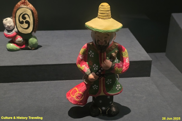 “올해 자랑거리는 당인을 두 번 본 것”이라는 에도 시대 소설가의 하이쿠에서처럼, 통신사는 일본에서 열광적인 환영을 받으며 민중들의 일상과 문화에 깊이 스며들었습니다. 통신사는 국가 외교 사절단으로서 공식적인 공무를 수행한 것이지만, 오랜 평화 시기를 거치며 그들이 가져온 문화는 자연스럽게 민간으로 확산되었습니다. 조선 문화에 대한 애호풍조는 통신사가 왕래하지 않던 시기에도 지속되었으며, 통신사가 직접 방문하지 않은 지역까지 영향을 미쳤습니다. 통신사 행렬에 대한 관심이 높아지면서, 이를 감상하기 위한 가이드북이 제작되어 널리 읽히고 향유되었습니다. 이러한 통신사 열풍은 단순한 감상을 넘어, 민중들의 실생활 속 에서 적극적으로 수용되는 단계에까지 이르렀습니다. 사람들은 축제에서 통신사 복장을 입고 그들을 흉내 내는 가장 행렬을 벌이기도 했는데, 이 유행이 지나치게 확산되자 막부가 금지령을 내릴 정도였습니다. 또한, 통신사는 패션 아이콘으로서 공예품의 디자인에도 활용되었으며, 신사에 봉헌하는 에마와 같은 민속문화에도 자연스럽게 녹아들었습니다. 이를 통해 통신사가 일본 민중의 삶과 문화에 얼마나 깊이 스며들어 있는지 확인할 수 있습니다. (안내문, 서울역사박물관 특별전, 2025년)