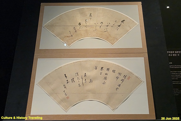 통신사 역관으로 추정되는 박덕원과 일본인의 시로 구성된 부채 글씨이다. 서로 창수한 시로 여겨진다. 박덕원은 통신사 소통사로 방일했다고 알려졌으나 최근 연구에서는 문위행으로서 쓰시마를 왕래한 인물이라는 이견도 있다. 일본 각지에 남긴 그의 와카와 하이카이 작품을 통해 수준급의 일본어 실력을 갖추었고 한시에도 조예가 깊었음을 알 수 있다. (안내문, 서울역사박물관 특별전, 2025년)