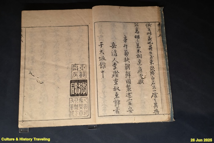 통신사가 에도에 머물렀을 때 야마다 세이친과 나눈 필담과 창화시를 기록한 책이다. 의관이었던 세이친은 양의 이좌국과 많은 필담을 나눴으며, 조선의 언문에도 관심이 많아 언문 반절을 순서대로 늘어놓은 ‘언문 반절표’를 수록했다. (안내문, 서울역사박물관 특별전, 2025년)