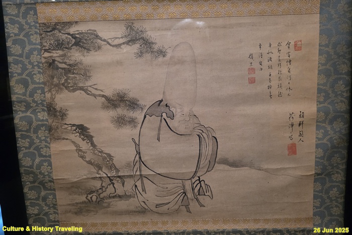 하담이 그린 수노인그림이다. 수노인은 장수를 의미하는 길상적 소재로 일본인들에게 애호되었다. 우측 상단에는 1811년 마지막 사행 때 조선인들과 교류한 학자 고가 세이리의 글이 쓰여 있다. (안내문, 서울역사박물관 특별전, 2025년)