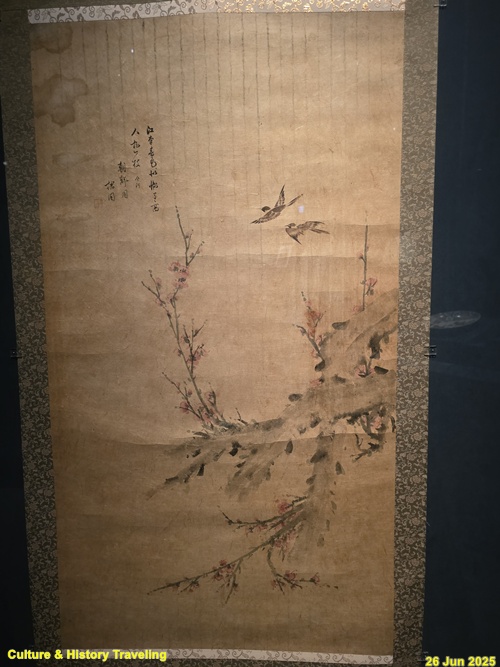 부산의 화가 변지한이 꽃나무와 새를 그림이다. 그는 통신사 화가 변박의 집안사람으로, 밀양 변씨 가문의 역관 네트워크를 활용해 일본 수출용 그림을 제작했다. 그림에는 “강남의 봄빛은 여울과 같고, 고결한 사람이 한 가지를 잡고 있네”라는 화제와 ‘조선국 괴원’이라는 글씨가 적혀 있어 일본의 요청으로 제작되었음을 보여준다. 변지한이 옅은 채색으로 그린 화조 그림은 일본에서 인기를 끌었으며, 부산의 왜관을 중심으로 일본 수출을 위한 회화도 활발히 제작되었다. (안내문, 서울역사박물관 특별전, 2025년)