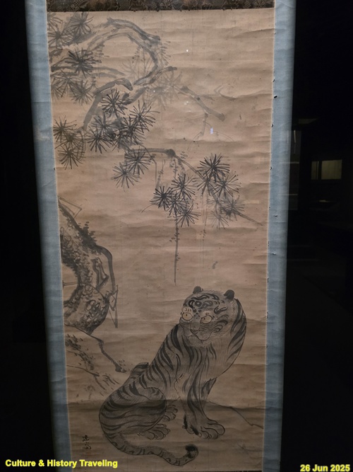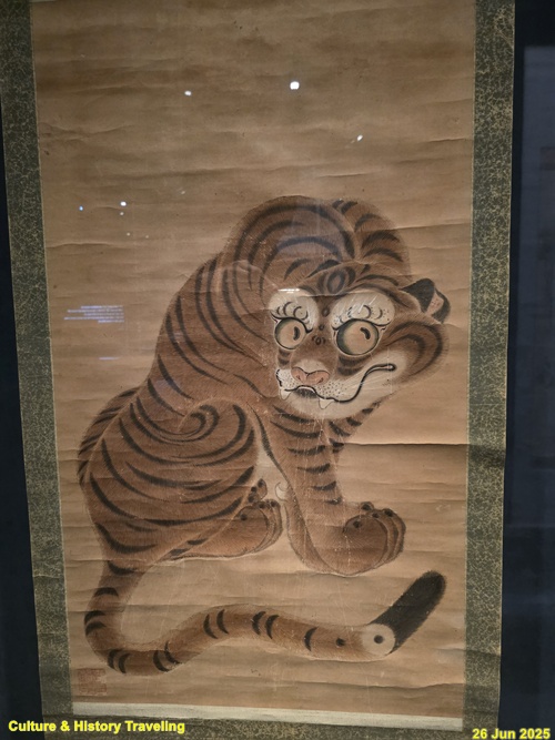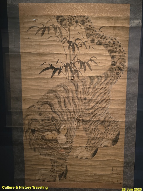 이 그림은 일본 수출용으로 제작된 작자 미상의 호랑이 그림이다. 조선시대 호랑이 그림은 주로 소나무와 함께 그려졌으나, 일본 수출을 위한 호랑이 그림은 대나무와 함께 그려진 사례가 많다. 대나무와 호랑이의 조합은 선종과 관련된 의미를 지니며, 여기에 무사적 취향이 더해져 에도 시대에 많은 사랑을 받았다. 또한 매 그림과 함께 일본에서 인기가 높은 소재였던 만큼, 일본인의 취향에 맞춰 적극적으로 제작된 것으로 보인다. (안내문, 서울역사박물관 특별전, 2025년)