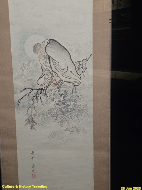 조선 말기에 활동한 도화서 화원 이한철의 그림이다. 이한철은 마지막 통신사행을 다녀온 이의양의 아들이자 당시의 대표적인 화사이다. 이 그림은 역동적으로 파도치는 물결 위에서 난을 밟고 고요히 앉아 명상하는 나한의 모습을 그린 것이다. 이러한 나한의 모습은 험난함 속에서도 중생을 향한 구제의 의지와 깨달음을 향한 정신적 여정을 보여준다. (안내문, 서울역사박물관 특별전, 2025년)
