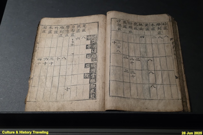1485년(성종 16)에 완성된 「경국대전』은 조선의 통치제제 전반을 규정한 최고의 법전입니다. 중앙관서의 편성에 따라 이전.호전.예전.병전.형전.공전으로 구성되었습니다. 「공전」에는 사옹원司婆院 소속 사기장沙器匠 380명에 대한 규정이 포함되어 있어 주목됩니다. 이들은 앞선 시기 『세종실록지리지』에 수록된 전국 139개 자기소에 속했던 장인들로, 관요館黑 설치 이후 국가 운영 체제에 편입되어 도자기 생산을 담당했던 현황을 보여줍니다. (안내문, 중앙박물관 특별전, 2025년)
