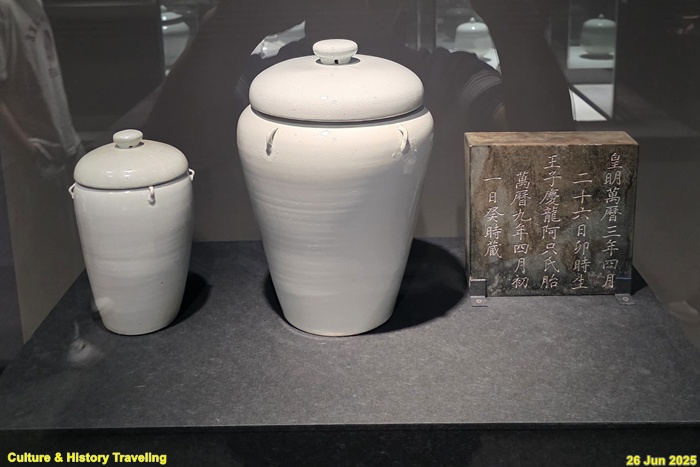 조선은 유교적 이상 사회를 이룩하려고 나라의 의례와 관습을 유교식으로 바꿔 나갔습니다. 분청사기와 백자는 유교식 예禮를 구현하는 데 사용되었습니다. 왕실의 제사, 군사 예절, 결혼, 손님맞이, 장례 등 다섯 가지 예절에는 정해진 모양대로 금속과 도자기 그릇을 만들어 사용했고, 왕조의 권위를 상징하는 그릇도 만들었습니다. 왕실에서 태어난 아기의 태胎는 특별한 항아리에 담아 왕조가 영원하기를 바랐고, 세상을 떠난 사대부를 위한 도자기 묘지基誌에는 추모하는 마음을 담았습니다. (안내문, 중앙박물관 특별전, 2025년)