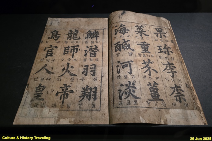 조선 선조 대 명필 석봉 한호가 쓴『천자문』입니다. 『천자문』은 예로부터 글씨를 처음 배울 때 사용하는 대표적인 교육서였습니다. 이 책은 1583년, 선조의 명을 받아 한호가 직접 쓰고 나라에서 목판으로 찍어 배포한 것입니다. 처음 간행된 판본인 만큼 석봉체의 특징이 가장 잘 드러나 있습니다. 글씨는 획의 굵기가 일정하고, 점과 선, 자형 모두 단정하고 깔끔합니다. 학습용 글씨로 손색이 없는 구조와 균형을 보여줍니다. 이후 한호의 『천자문』은 여러 차례 다시 간행되었으며 전국의 관아, 사람들에게 널리 활용되었습니다. (안내문, 중앙박물관 특별전, 2025년)