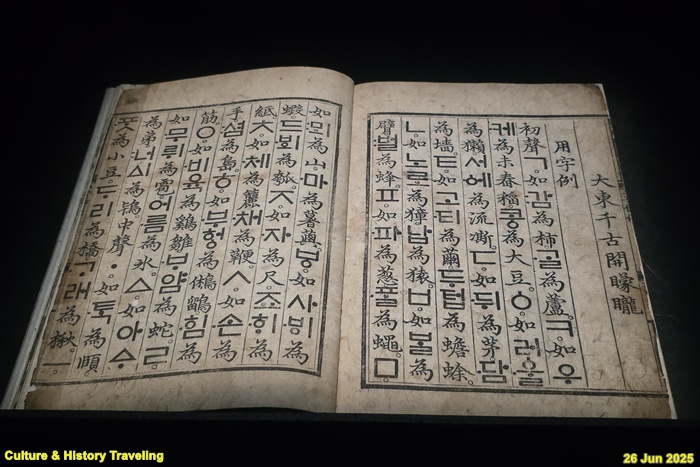 세종이 1443년 새로운 글자인 훈민정음을 만들고, 1446년에 그 원리를 설명하기 위해 지은 책입니다. 글자의 원리를 해석하고 예를 든 내용解例이 실려 있어 ‘해례본’이라고 부릅니다. 세종이 직접 쓴 서문, 글자를 만든 원리와 소리를 설명한 글, 자음과 모음의 원리를 설명한 글이 실렸습니다. 당시 사용하던 단어로 한글의 표기를 설명한 부분에서는 조선 전기에 실제로 사용하던 한글 낱말을 찾아볼 수 있습니다. (안내문, 중앙박물관 특별전, 2025년)