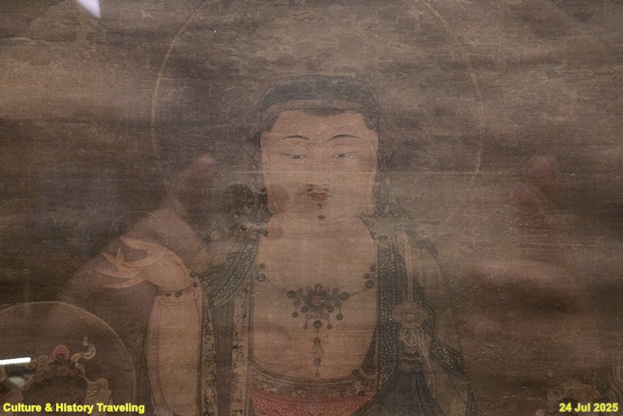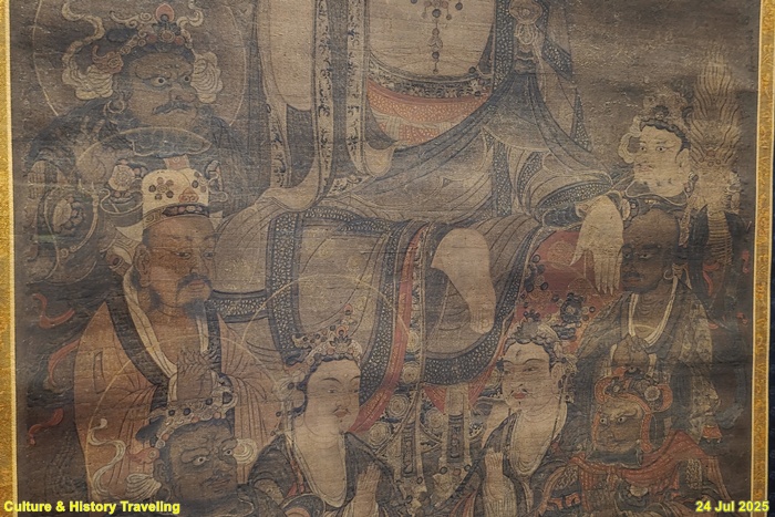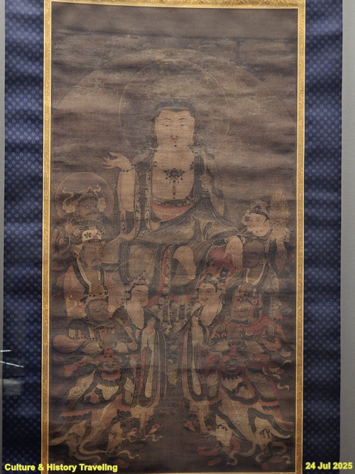 서울 용산구 삼성미술관 리움에서 소장하고 있는 <지장도(보물)>이다. 중생들을 극락세계로 인도해 준다는 지장보살을 그린 그림이다. 지장을 본존으로 삼고 좌우 대칭으로 호법신이 심판관들을 그렸다. 이 불화는 본존보다 작은 8구의 인물을 아래에 배치한 전형적인 고려시대 2단 구조를 보인다. 본존 아래 사천왕 사이의 제석과 범천은 보살형으로 표현되었으며, 지장은 두건을 쓰고 여의주를 든 화려한 모습이다. 모든 인물은 둥근 머리광배를 지녔고, 지장은 2중 광배로 특징적이다. 전체적으로 다소 무겁지만 섬세한 필치와 정교한 채색으로 고려 불화의 뛰어난 기법을 보여준다.