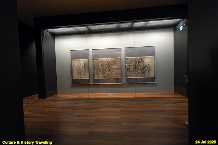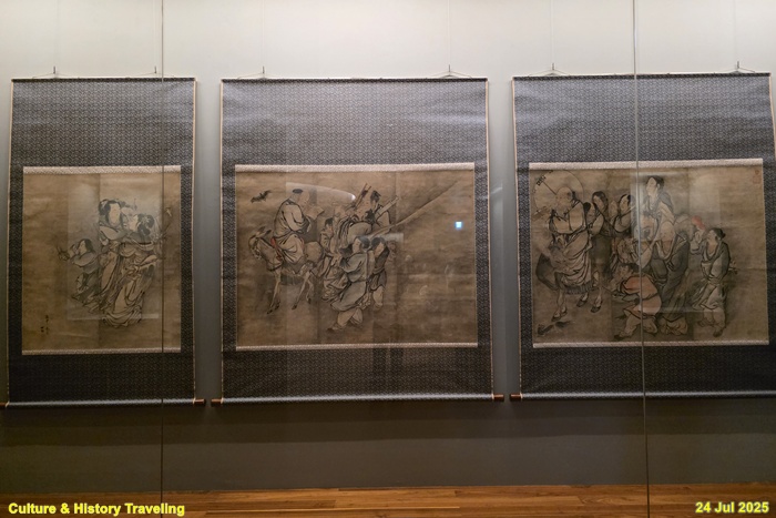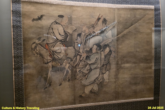 1, 2, 3폭은 외뿔소를 타고 있는 노자, 천도복숭아을 든 동방삭, 종이를 들고 걸어 다니면서도 글을 쓰는 문창, 머리를 깎은 종리권, 머리에 두건을 두른 여동빈(呂洞賓), 호리병을 든 이철괴(李鐵拐) 등이 보인다.