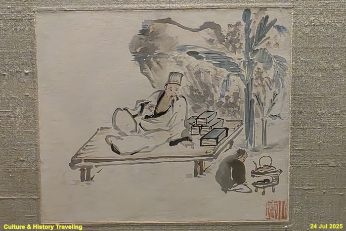 고사한일도(高士閑日圖)는 조선 시대 문인화에서 자주 등장하는 주제 중 하나이다. 은거한 선비가 한가로운 나날을 보내는 그림이라는 뜻입니다. 이재관은 여항문인 화가로 활동했다. 어진 모사 작업에 참여하는 등 당시 능력을 인정받았던 것으로 보인다.