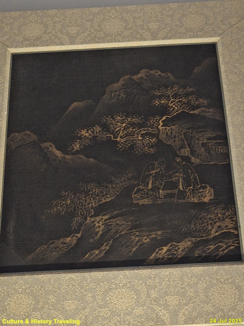 조선 말기에서 대한제국, 그리고 근대기로 넘어가는 시기 한국 회화의 변화를 보여주는 작품이다. 붉게 물든 단풍나무 숲 아래에서 말을 멈추고 잠시 쉬어가는 여행자와 풍경을 표현하고 있다. 전통 산수화의 필법을 기반으로 하되, 서양식 원근법과 사실적인 명암법이 부분적으로 적용되었다. 고요함과 사색적인 분위기, 근대적 생활 감각이 더해져 있다.