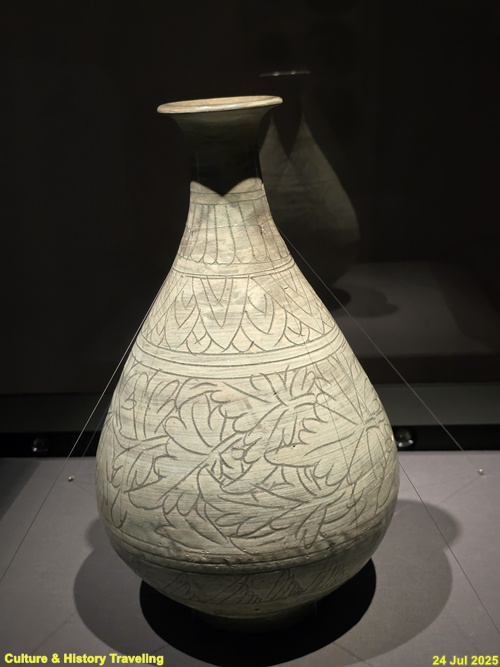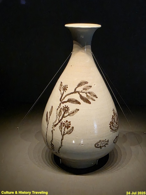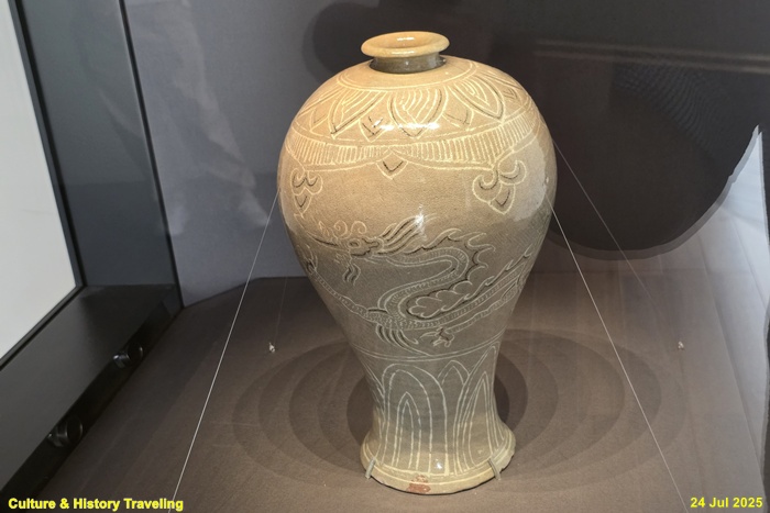 매병은 고려시대를 대표하는 그릇으로 술과 기름 등을 담는 용도로 사용했으며 조선 초까지 제작되었다. 조선 초에 제작된 상감 분청사기의 특징을 잘 보여주고 있다. 고려시대 상감청자의 깔끔하고 정돈된 무늬와 달리 분청사기 특유의 자유분방한 모습을 보여준다.