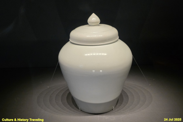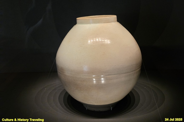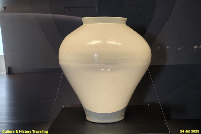 달항아리는 흰 바탕색과 둥근 형태가 보름달을 닮았다고 하여 붙여진 이름이다. 장식이 없는 순수한 백색의 순백자(純白磁)로 조선시대 사대부들이 선호했던 정서를 잘 표현하고 있는 작품이다.