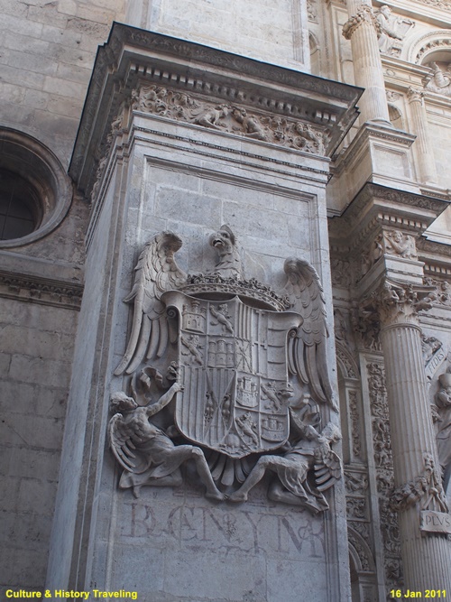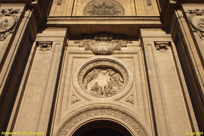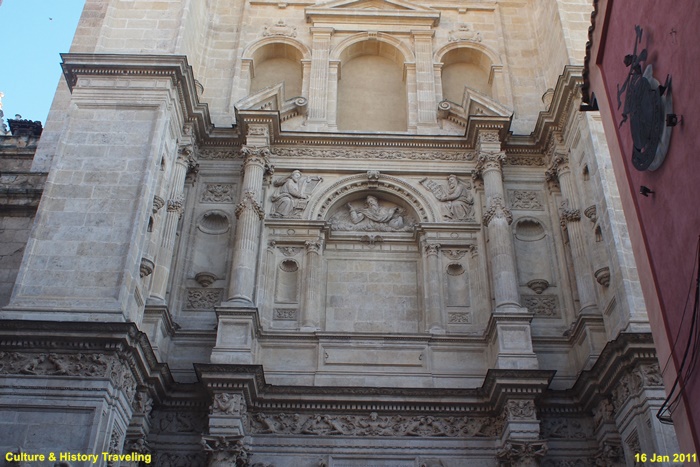 출입문 위쪽으로는 많은 성상들로 장식할 의도로 보이는데 여러곳의 성상이 들어갈 감실과 벽면이 비어 있는 것으로 봐서도 아직 완공되지 않았다는 것을 알 수 있다.