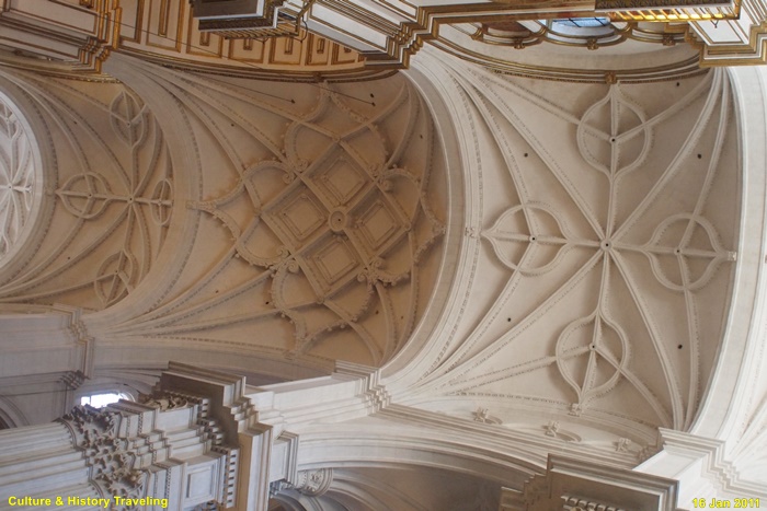 성당 내부 중앙통로 천장은 리브 볼트(Rib Vault)라 불리는 고딕양식 천정의 형태를 보여주고 있다. 천정이 높고 가벼워 보이며, 리브들이 교차하면서 별 모양이나 망형 무늬를 이룬다.