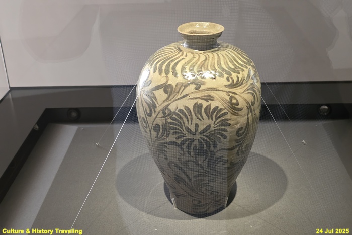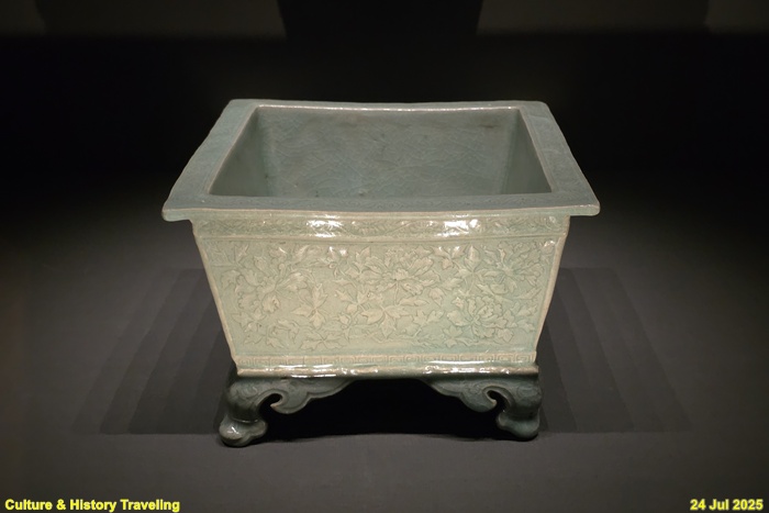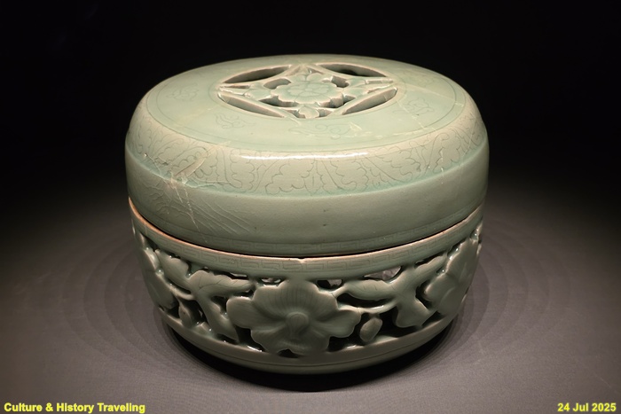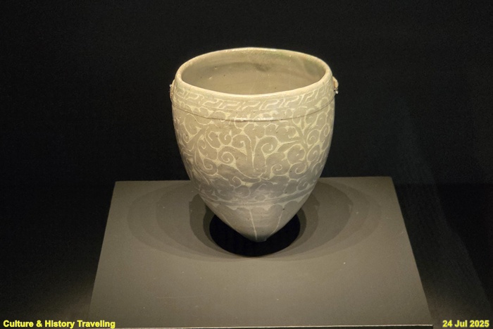 <청자 잔을 전시하고 있는 공간><손잡이가 있는 청자 잔><청자 잔><앞에서 본 모습(왼쪽)><왼쪽에서 본 모습><앞에서 본 모습(오른쪽)><오른쪽에서 본 모습><청자상감 기사명 포류수금문 대접, 고려 1329년><청자철채 화형 접시, 고려 12세기><청자퇴화 국화문 병, 고려 12세기><청자퇴화 국화문 합, 고려 13세기><청자철화 초문 유병, 고려 12세기><청자상감 보상화당초문 잔, 고려 12세기><청자음각 연화문 장경병, 고려 12세기><청자상감 국화모란문 호, 고려 13세기><청자철화 보상화당초문 매병, 고려 12세기><청자철화 초문 호, 고려 12세기><청자철화 보상화문 주자, 고려 12세기><청자철화 초문 반, 고려 12세기>