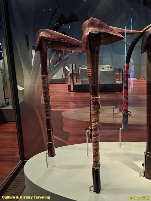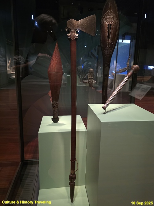 오세아니아 사람들은 섬마다 다른 자연에 적응하며 이동과 정착을 이어왔습니다. 그들은 자연에서 얻은 재료로 도구와 형상을 만들고, 모든 존재에 정령과 조상의 창조 흔적이 깃들어 있다고 믿었습니다. 바다와 숲, 돌과 나무는 물론, 카누의 노에도 신과 정령, 조상의 힘이 있다고 여겼습니다. 자연과 깊이 연결된 이들의 조화로운 세계관은 오늘날까지도 이어지고 있습니다. (안내문, 중앙박물관 특별전, 2025년)