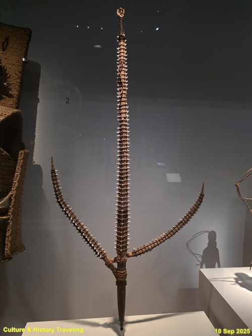 풍요와 번영을 기원하며 조상께 바치는 공물입니다. 조상을 상징하는 가면에 이것을 매달아 ‘의식의 집’에 세워둡니다. 얌(yam)을 수확하는 기간에 여는 ‘예나(Yena)’ 의식 때 씨족 지도자들은 모여 춤추고 노래하며 조상께 예를 올립니다. (안내문, 중앙박물관 특별전, 2025년)