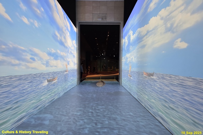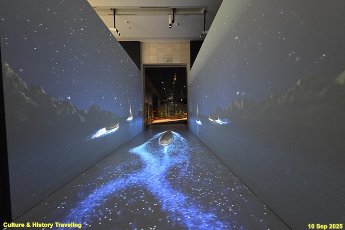 전시실 입구에는 수많은 섬들에 흩어져 살았던 사람들이 이주해왔던 여정을 보여주는 장면을 보여주고 있다. 오세아니아에서 바다는 이주의 길이자 삶의 터전으로, 신·조상·자연이 하나로 이어진 세계를 보여준다. 이 항해는 인간이 세상을 이해하고 연결해온 방식을 담은 여정이다.