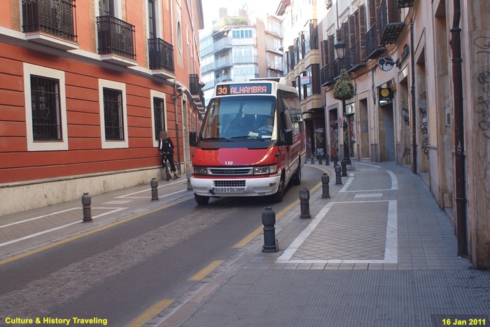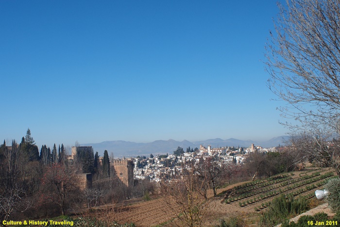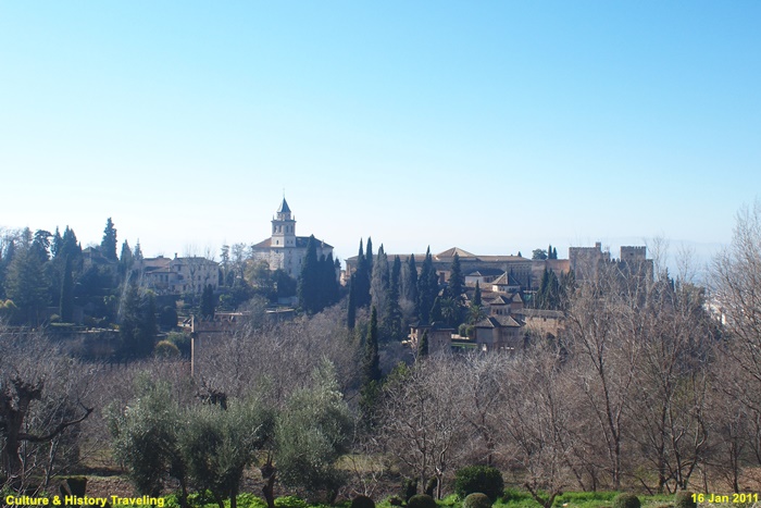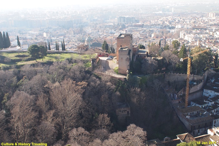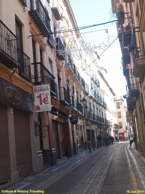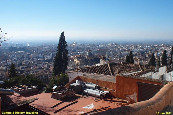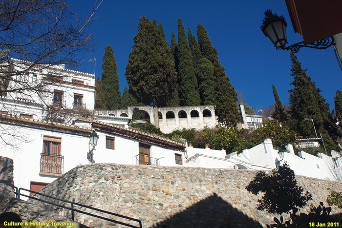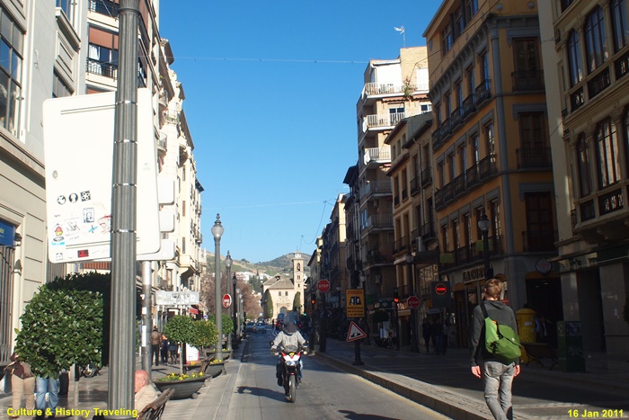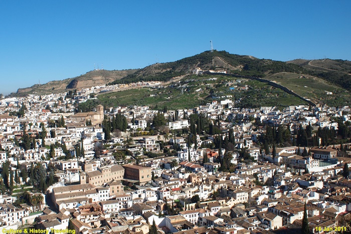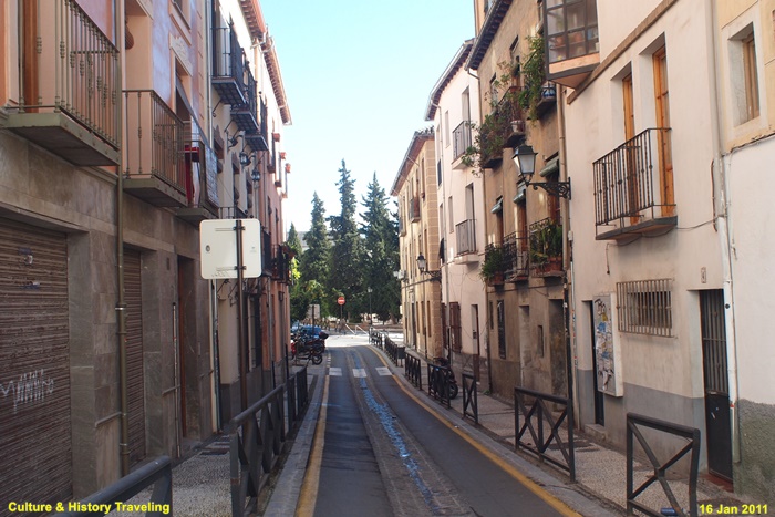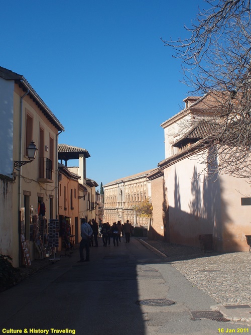 그라나다 대성당이 있는 도심에서 알함브라까지는 약 1km 정도 떨어져 있으며 걸어서 도심을 살펴보기에 좋은 길이다. 도심과 알함브리 사이는 비탈길·테라스형 골목·작은 광장이 반복되는 언덕 마을 형태이다.