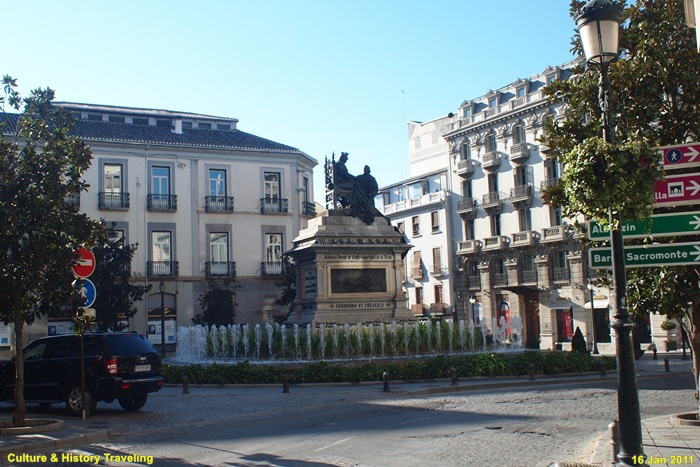 그라나다 도심 대성당 뒷쪽편 광장에는 이 도시를 상징하는 그라나다를 함락한 스페인 군주인 이사벨과 페르난도의 동상을 볼 수 있다. 이 광장이 그라나도 도심 중앙에 해당하는 것으로 보인다.