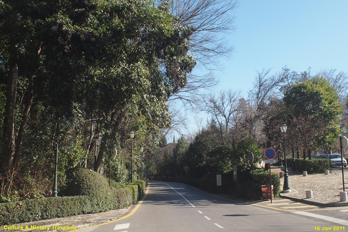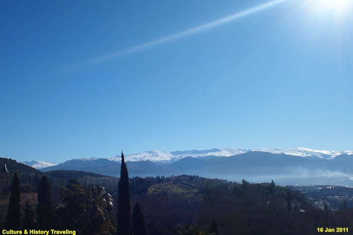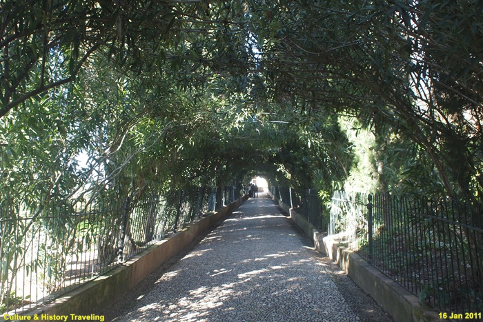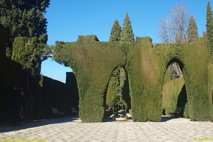 알함브라의 붉은 벽과 짙은 녹색 숲이 대비되어 경관적으로 가장 인상적인 공간을 만들고 있다.
