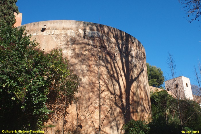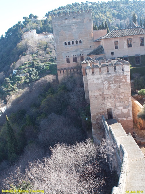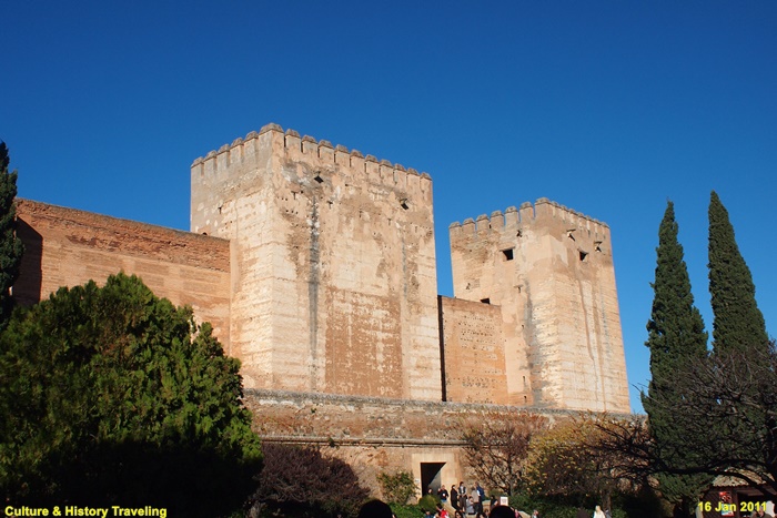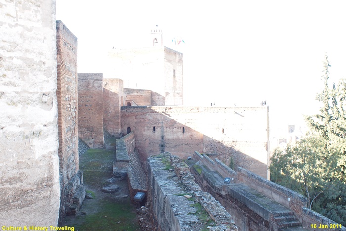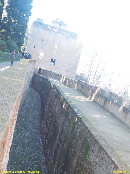알함브라 성곽은 석축성 형태도 있지만, 벽돌과 돌을 섞어서 두꺼운 성벽을 쌓은 석성과 전성이 섞인 형태를 하고 있다.