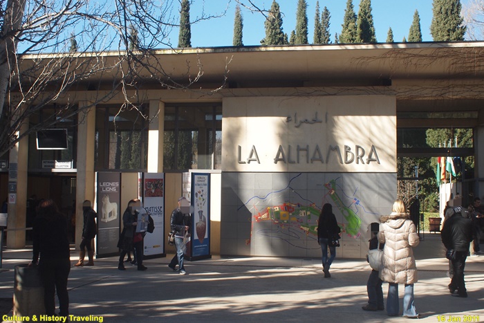 알함브라는 그라나다 동쪽편 언덕위에 세워진 읍성의 형태를 갖추고 있는 지역이다. 중세 유럽의 도시들이 강을 끼고 읍성을 이룬 것과는 달리 경사진 언덕을 이용하고 있다. 관람객이 출입하는 입구는 동남쪽 여름궁전 헤네랄리페 부근에 있다.