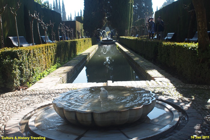 알함브라와 헤네랄리페 모두에 물을 공급한 것은 아세키아 레알 수로(Acequia Real)로 , 오늘날에도 여전히 상당 부분이 남아 있다. 이 수로는 알함브라에서 동쪽으로 약 6.1km 떨어진 시에라 네바다 산기슭의 오르막길에 있는 다로 강에서 물을 끌어온다.