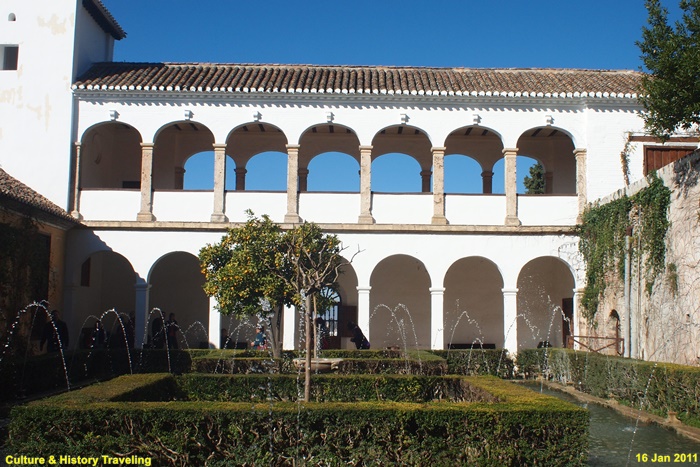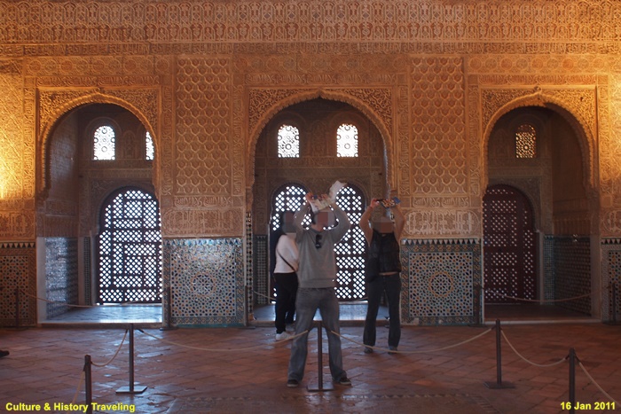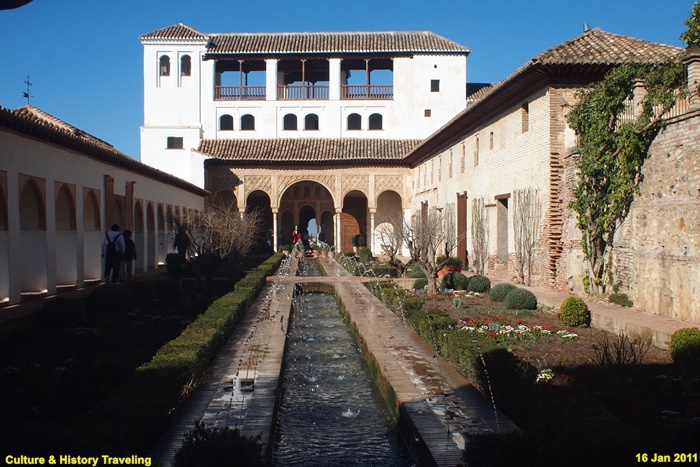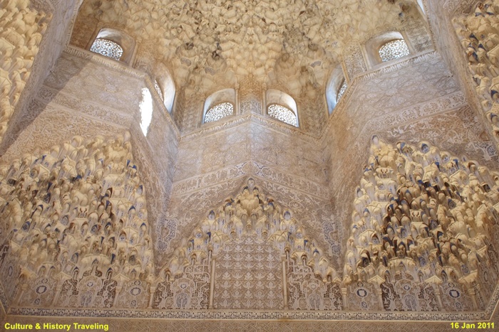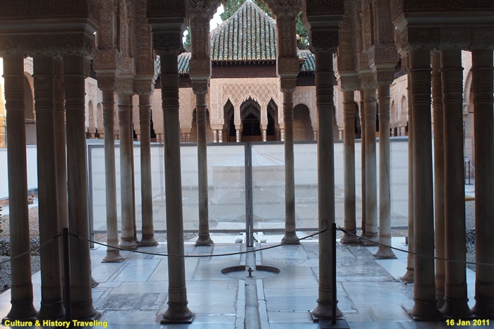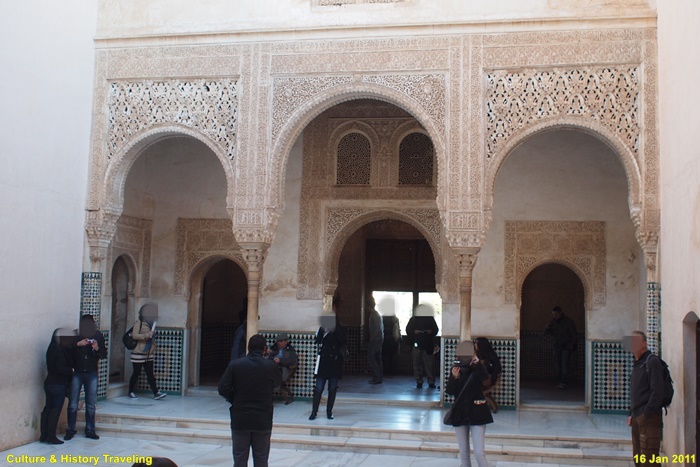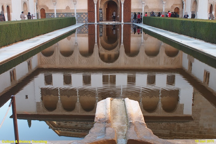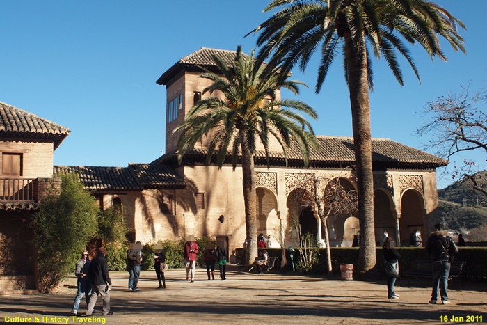 나스르 궁전(Palacio Nazaríes)은 ‘알람브라의 추억’ 이라는 곡으로 유명한 장소 이다. 이슬람이 스페인을 지배하던 시절인 13세기에 건설한 궁전이다. 알함브라라는 말은 아랍어로 붉은색을 뜻하는데 이 궁전과 성채의 외벽의 색깔때문에 붙여진 이름이라고 한다. 아랍인들이 유럽에서 세운 이슬람식 건물 중 가장 아름답고 완벽한 건물로 여겨지고 있다. 이 건물은 완벽하게 균형 잡힌 방과 안마당들, 정교하게 만들어진 회벽, 아름다운 타일, 훌륭하게 조각된 목재천장 등 정교하고 아름다운 이슬람 건축양식에서 볼 수 있는 곳이다.
