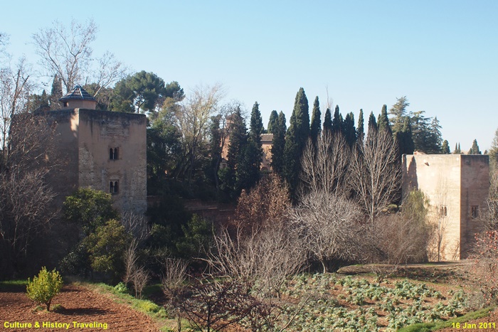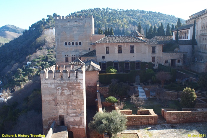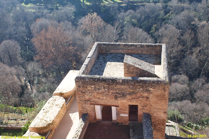 상당히 화려한 내부 장식을 하고 있었던 나스르 궁전 코마레스탑도 외견상으로는 일반적인 망루의 모습을 하고 있다. 그라나다 성채의 성벽은 언덕을 따라서 상당히 넓은 지역에 포함하고 있다.