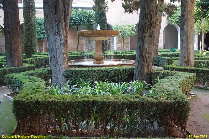 린다라자 안뜰(Patio de Lindaraja) 뒷편에 있는 작은 정원형 안뜰이다. 사자의 궁전과 연결되어 있으며, 왕비와 궁중 여인들의 생활 공간이었던 하렘 구역과 가까운 곳에 위치한다. 직사각형 평면을 기본으로 하고 있으며, 중앙에는 분수가 있고 주위에 작은 정원과 회랑이 둘러싸여 있다. 분수는 단순하면서도 우아하며, 정원은 오렌지나무와 같은 식물들로 꾸며져 있어 조용하고 은밀한 공간을 연출한다.