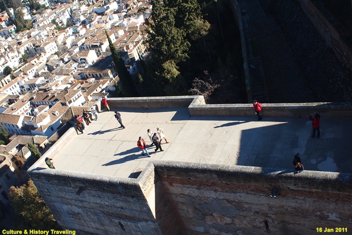 카사바 서쪽편 끝에는 제일 높은 망루인 토라데 벨라(Torre de la Vela, 감시꾼의 탑)이 있으며 이 망루 꼭대기의 테라스에서 환상적인 전망을 볼 수 있다. 토라데 벨라는 벽돌로 상당히 크고 높게 쌓은 망루로서 사방의 적을 감시하고 제압할 수 있는 구조이다. 1492년 1월 이곳에서 레콩키스타의 십자가와 현수막들이 걸렸다. 과거에는 이 탑에 매단 종의 소리로 비옥한 평원의 관개시스템을 조절했다고 한다.
