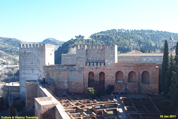 알카사바(Alcazaba of the Alhambra)는 그라나다 한가운데 있는 언덕에 위치한 9세기에 세워진 성채로 아랍어 ‘붉은 성’ 이란 뜻으로 알함브라라고 불리는 곳이다. 건물의 형태로 보았을때 요새와 궁전이 같이 있었던 알카사르와 비슷한 형태였던 것으로 보인다. 이곳을 통치한 아랍의 나스르 왕조가 13~14세기에 알카사바 동쪽편에 화려한 궁전인 나스르궁전(Palacio Nazaríes)을 지으면서 방어를 요새로서의 기능만 했던 것으로 보인다. 그라나다는 스페인을 통치하던 이슬람세력이 마지막으로 남아 있던 곳이어서 성벽과 요새가 그만큼 튼튼하게 지어졌기 때문인 것으로 보인다.