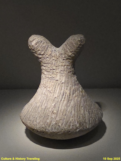 미티아로섬 사람들은 나무 조각에 붉은 깃털과 코코넛 섬유로 신의 모습을 만들었습니다. 깃털은 신의 몸을, 코코넛 섬유 끈과 나무에 새긴 무늬 등은 혈통을 뜻하며 꼭대기 둥근 모양은 혈통이 하나의 신에서 왔음을 상징합니다. 지금은 깃털과 끈은 사라지고 나무 조각만 남았습니다. (안내문, 중앙박물관 특별전, 2025년)