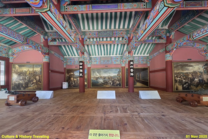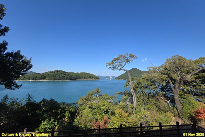 한산대첩 현장은 거제 견내량 해협에선 통영 한산도 사이의 바다이다. 조류가 빠르게 흐르고 섬들이 복잡하게 위치한, 전략적으로 매우 유리한 지형이다. 임진왜란 초기, 이순신 장군이 이끄는 조선 수군이 학익진(鶴翼陣) 전법을 활용하여 일본 수군을 포위·섬멸한 해전이다. 일본의 주요 전략목표였던 한양에서 부산으로 이어지는 부산 보급로를 차단하여 육상 전선 전체에 큰 영향을 준 결정적 전투이다.
