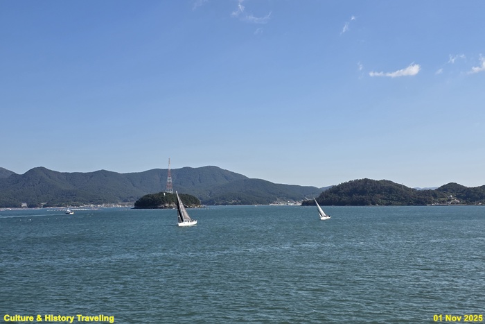 한산도 들어가는 길은 주로 통영에서 배를 이용하는 경로가 일반적이다 통영 여객선터미널에서 한산도를 운행하는 노선이 있으며 1시간 간격으로 운행된다. 한산도를 운행하는 여객선에서 볼 수 있는 통영만 바다가 임진왜란 때 격전이 벌어졌던 한산대첩의 현장이기도 하다.