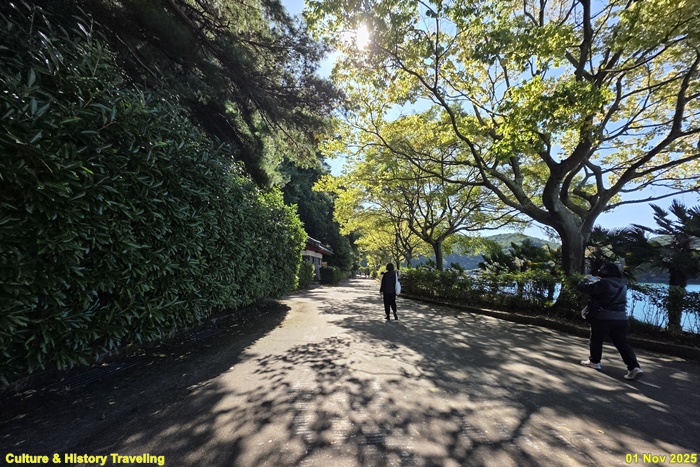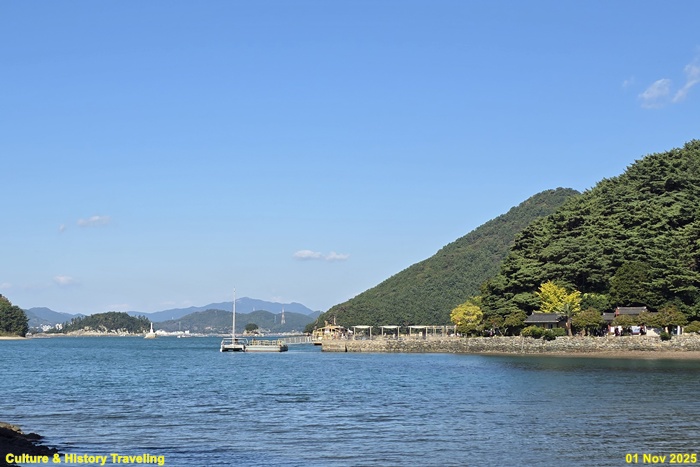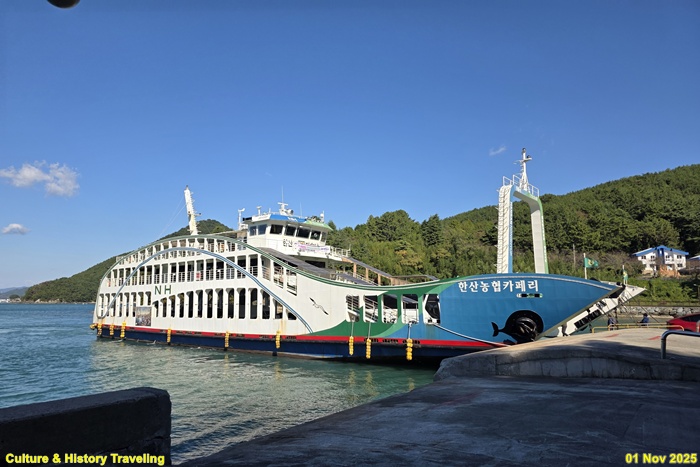 통영항에서 한산도 유적지까지는 여객선이 운항하고 있으며 선착장에서 유적지까지는 해안길을 따라 약 800m 정도 걸으면 된다.