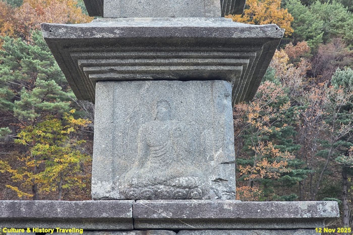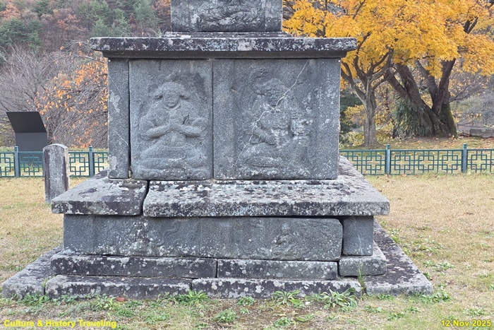 일반적인 석탑과 달리, 탑의 각 부분에 섬세한 부조가 새겨져 있어 예술적 가치가 매우 높다. 1층 기단에는 구름 위에 앉아 옷자락을 날리는 비천상이 각 면에 새겨져 있다. 2층 기단에는 불법을 수호하는 팔부신중이 생동감 있게 조각되어 있다.